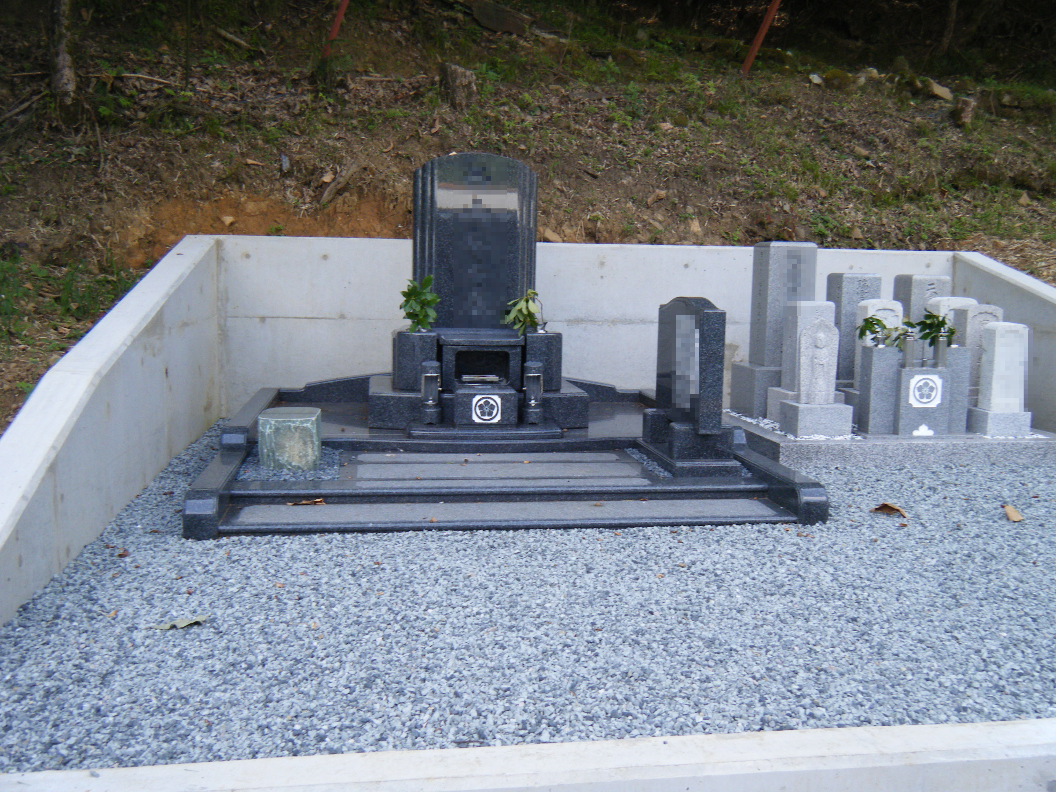 6.水鉢・花立・香炉・玉砂利・墓誌を設置して完成です |